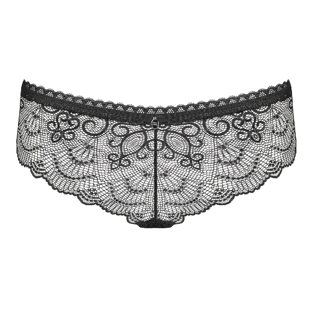 Panties made of delicate patterned lace, decorated at the front with a decorative pendant. The open crotch panties are crafted from fine patterned lace and perfectly define the buttocks. Feel the delight of touching this delicate lace. Look at the beautiful ornament and a charming pendant. Classic color, unique details – Firella will hit the spot. How about you? Are you ready to feel really feminine and bring the fire of desire to your bedroom?