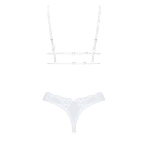 If you are looking for unique lingerie for a special occasion, this set is a truly heaven-sent choice! Delicate, translucent mesh with embroidered, tiny flowers will steal your heart. The Heavenlly set consists of triangular, soft cups, with an extended waist under the bust (longline) and a tempting thong. Be sure to check out the more spicy, open version of this set as well.