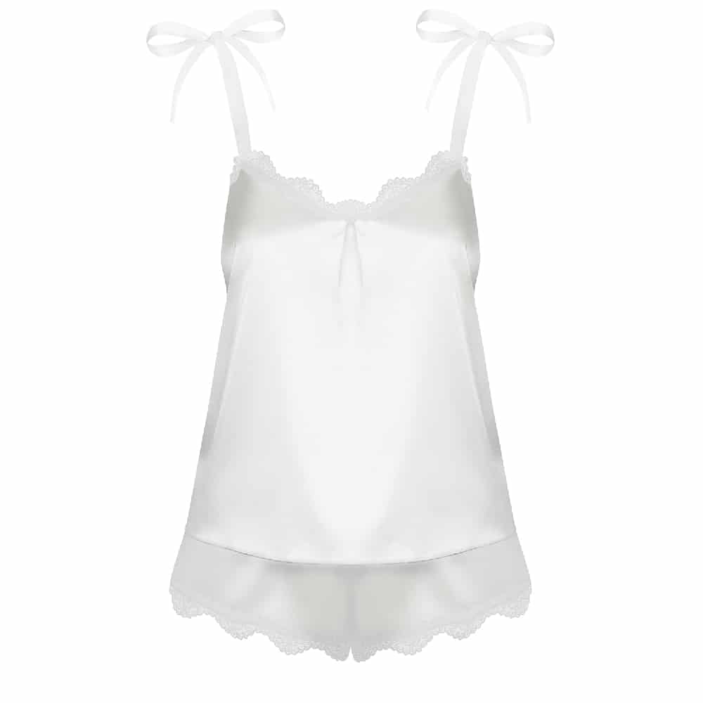 The perfect pajamas that looks sensual and feels just amazing on the skin. Let the white lace and the fantastic style of the Prima Neve set tempt you. Cute bows on shoulders will give a lovely style. In this superlight, charming pajamas you will have spicy dreams for sure.