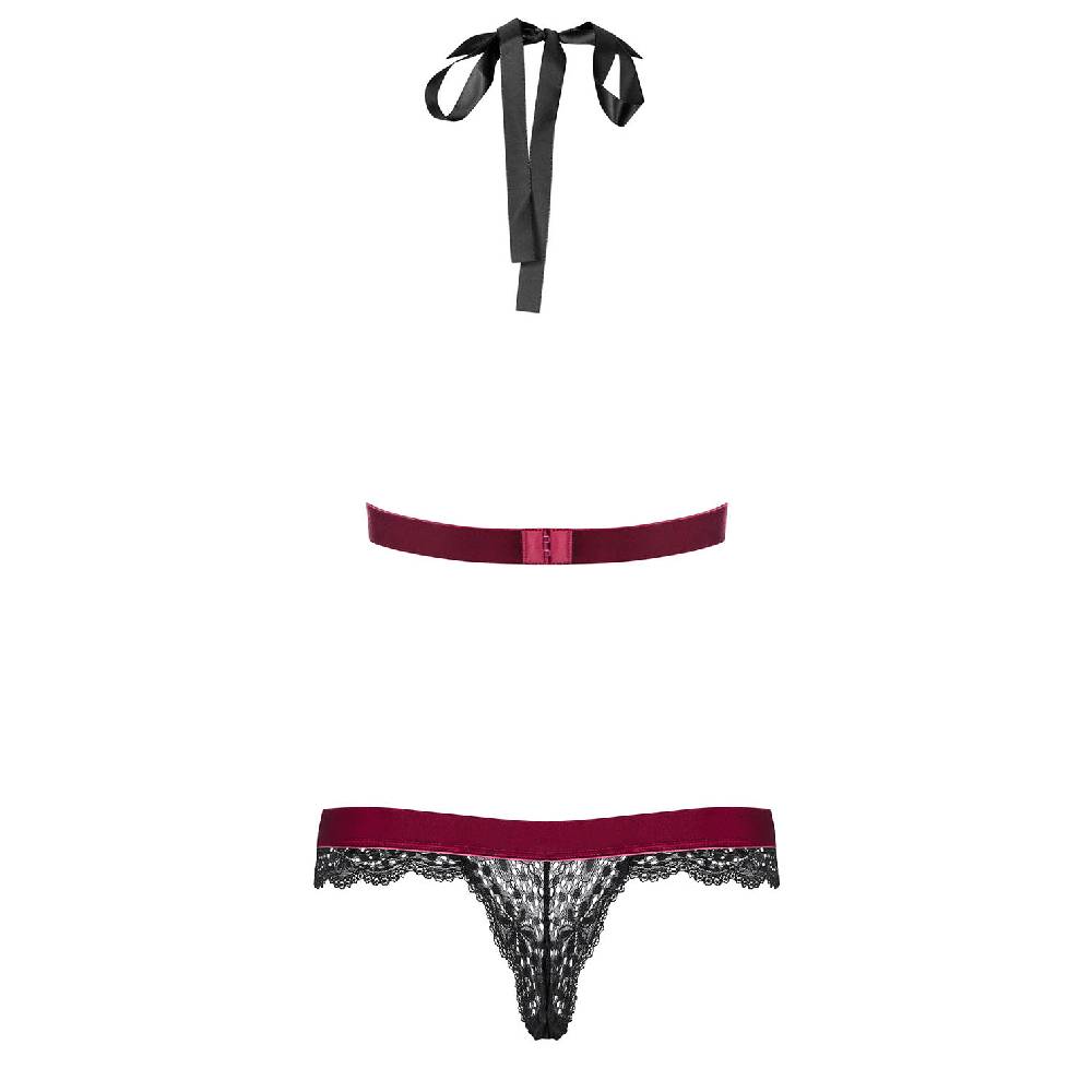 Rossita lace teddy lingerie from Obsessive will blow his mind! Unique teddy lingerie with almost completely open back. A flirty neck lacing and burgundy decorations create a fabulous style and add a lot of charm.