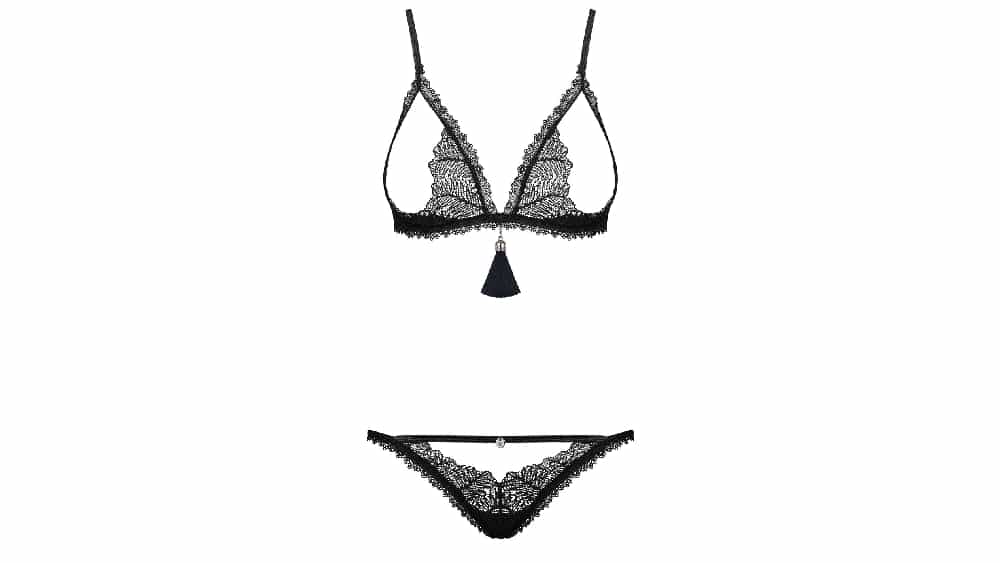 Obsessive Sensual Romanesa Cupless Bra with Thong set is hot and spicy! Look effortlessly chic and sexy with this daring set of cupless bra paired with an extremely spicy thong. Classic color combined with a tempting cut, nice touch of lace, enhanced breasts, accentuated buttocks and a flirtatious design. How about a pleasant start to the evening?