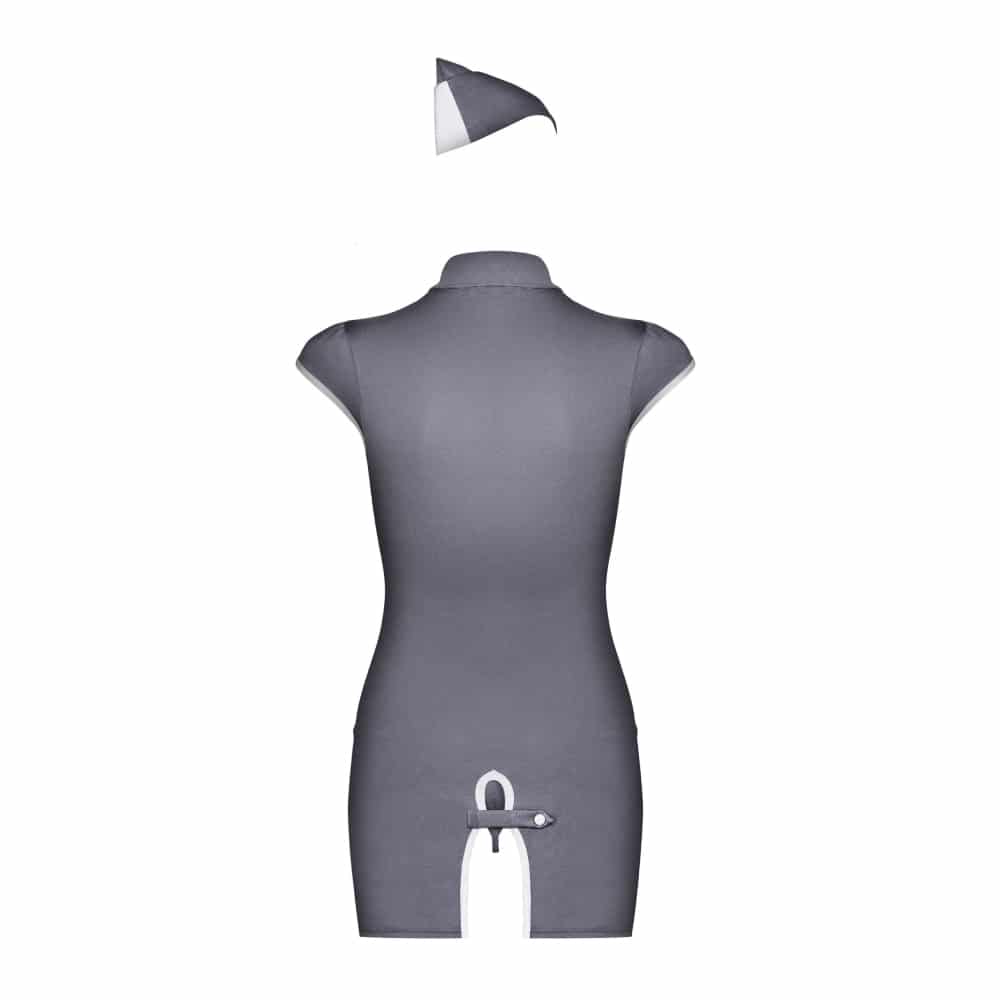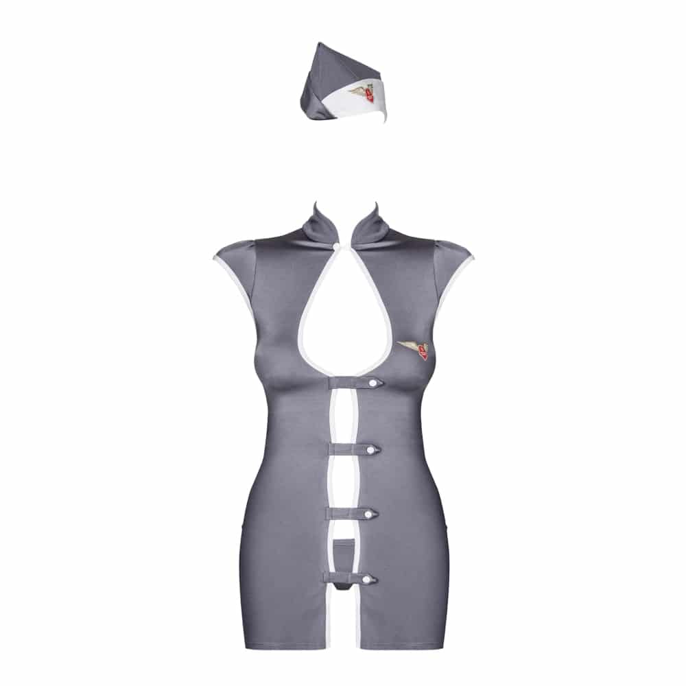 Are you ready for a pleasurable journey and new experiences? Put on this special uniform and have a great time! Whether it’s taking attentive care of the passengers or giving the pilot a hand – this sexy stewardess outfit is perfect for erotic role play! It includes a mini dress, a string and a cap. Grey / White.