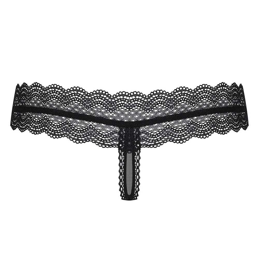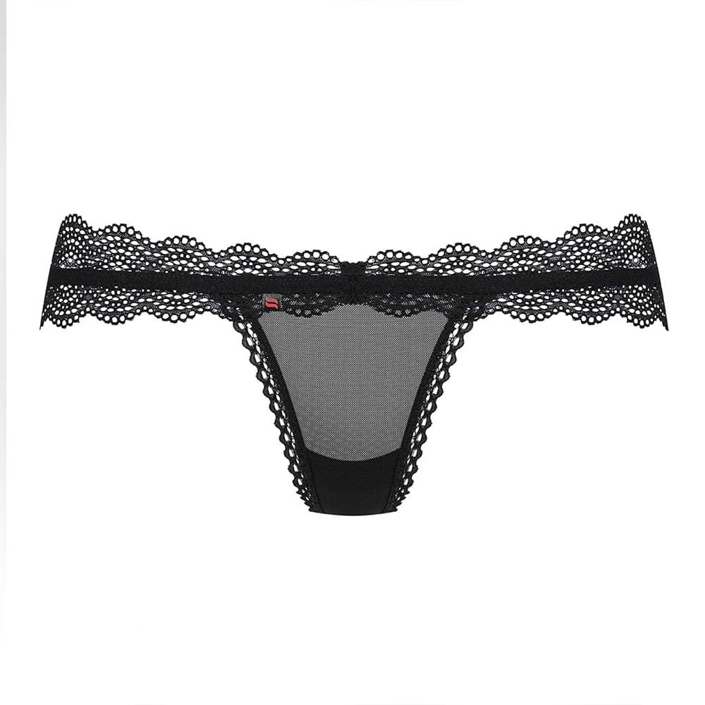Super soft mesh thong with elastic lace hip strap. Comfortable sexy wear from Obsessive Lingerie Line.