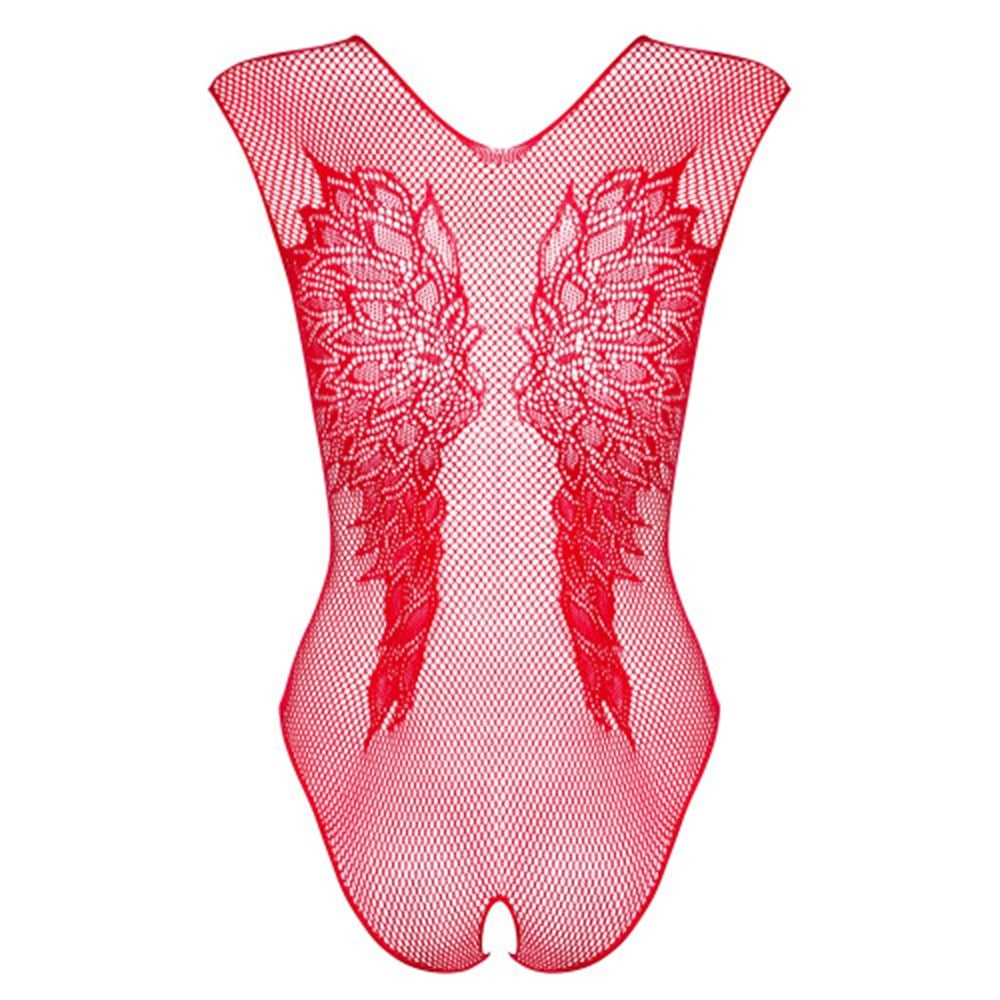 Tempting fishnet, naughty designed teddy in a sensual red colour. What else do you need to heat up the atmosphere and surprise your partner? Absolutely nothing! Made of incredibly soft and elastic material with a sexy pattern on the front and unique wings motif on the back. Sporting a daring open crotch for endless sexy play, this teddy is going to be your new favourite outfit.