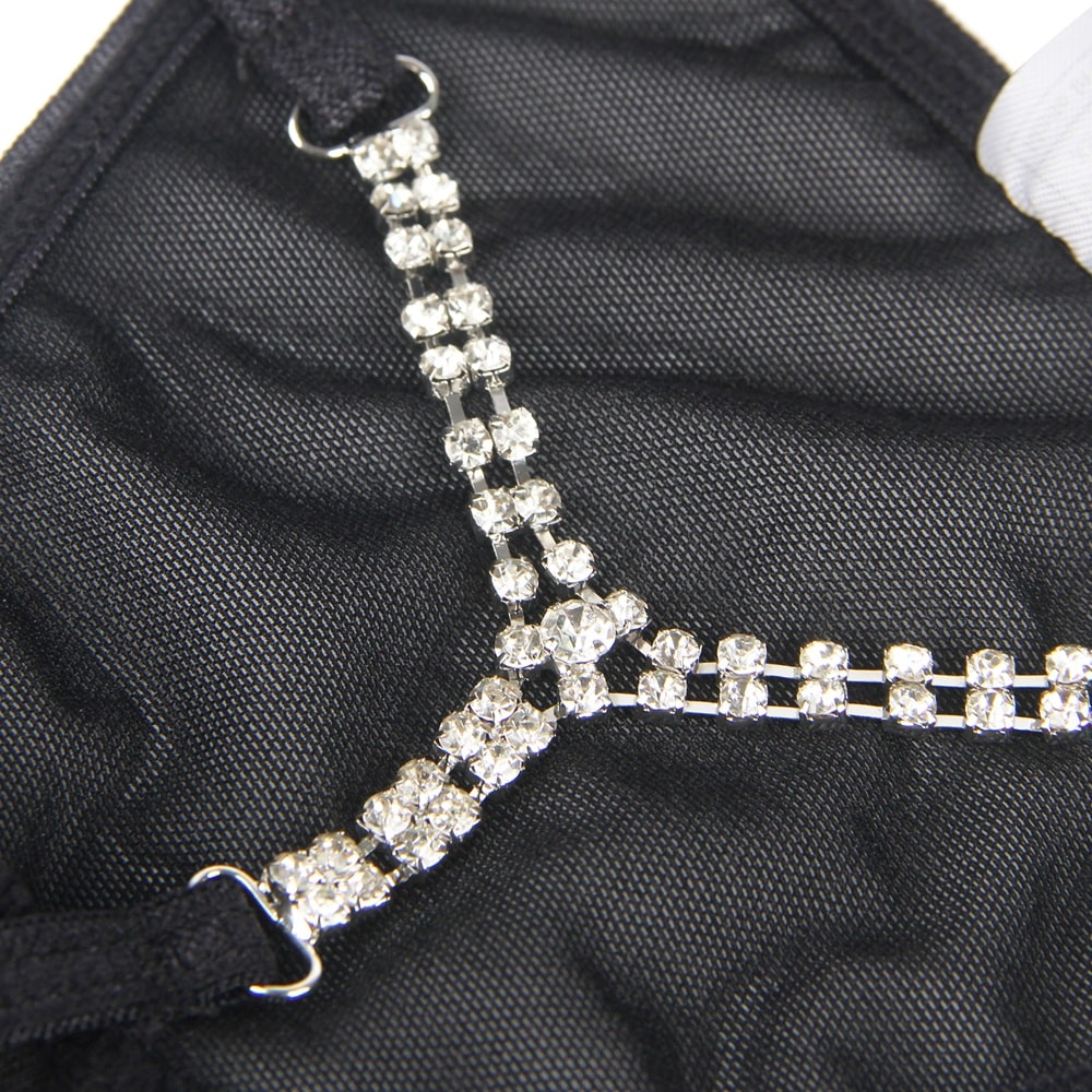 Plus Size Black G-String with Diamond Back. Elevate your lingerie drawer with this sophisticated black diamond back g-string. Crafted from ultra-lightweight, breathable mesh for a barely-there feel, it features a stunning double-row rhinestone chain stitched at the back for a touch of high-end glamour. It’s the perfect blend of minimalist comfort and exquisite, shimmering detail. FOR MORE PRODUCT INFORMATION, please, visit the main product's page down below or visit one of our physical stores in Limassol and ask our staff for product presentation…