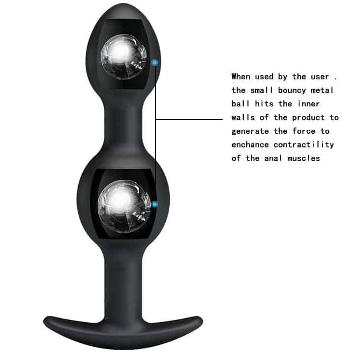 Black, silicone butt plug with 2 shaking heavy balls inside to create a unique sensation. The 2 balls will knock and shake once you inserted. Wearing of these balls is so very enjoyable and exciting sensation.