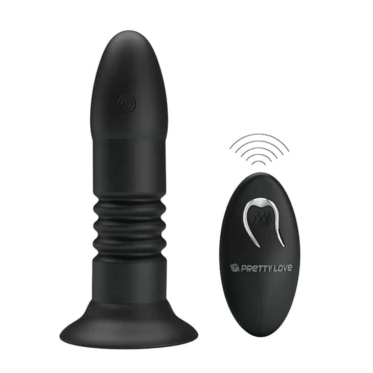 Wireless Remote controlled Silicone USB Rechargeable Anal Butt Plug Vibrator with 4 functions vibration up down movement and suction base cup for hands and mind free anal trips. Stick it on any clean straight surface and press the remote control and enjoy the mechanical up and down movement of Joy and pleasure.