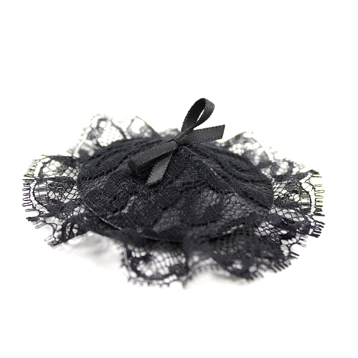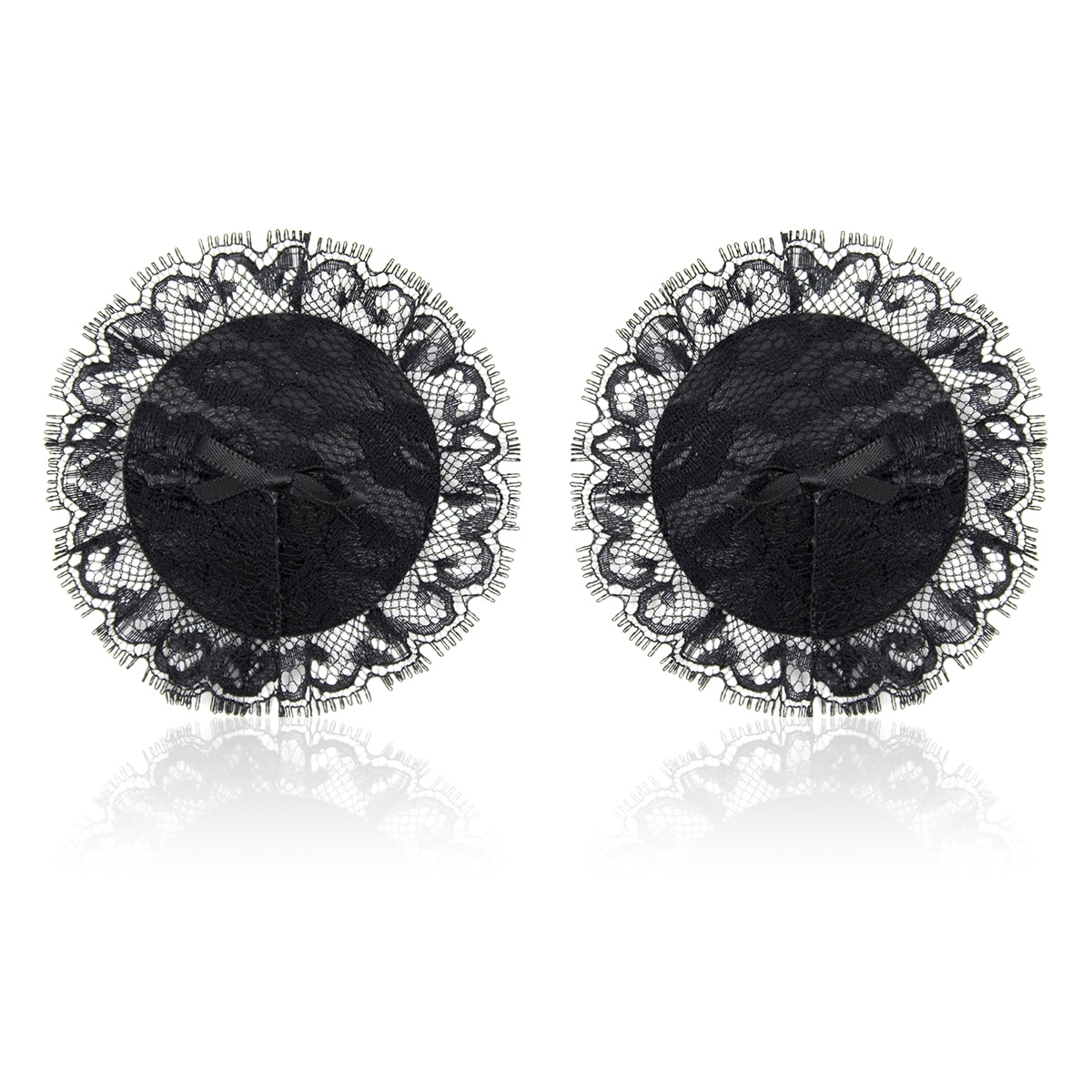 Round black nipple pasties with floral lace decoration for glamorous night with your lover.