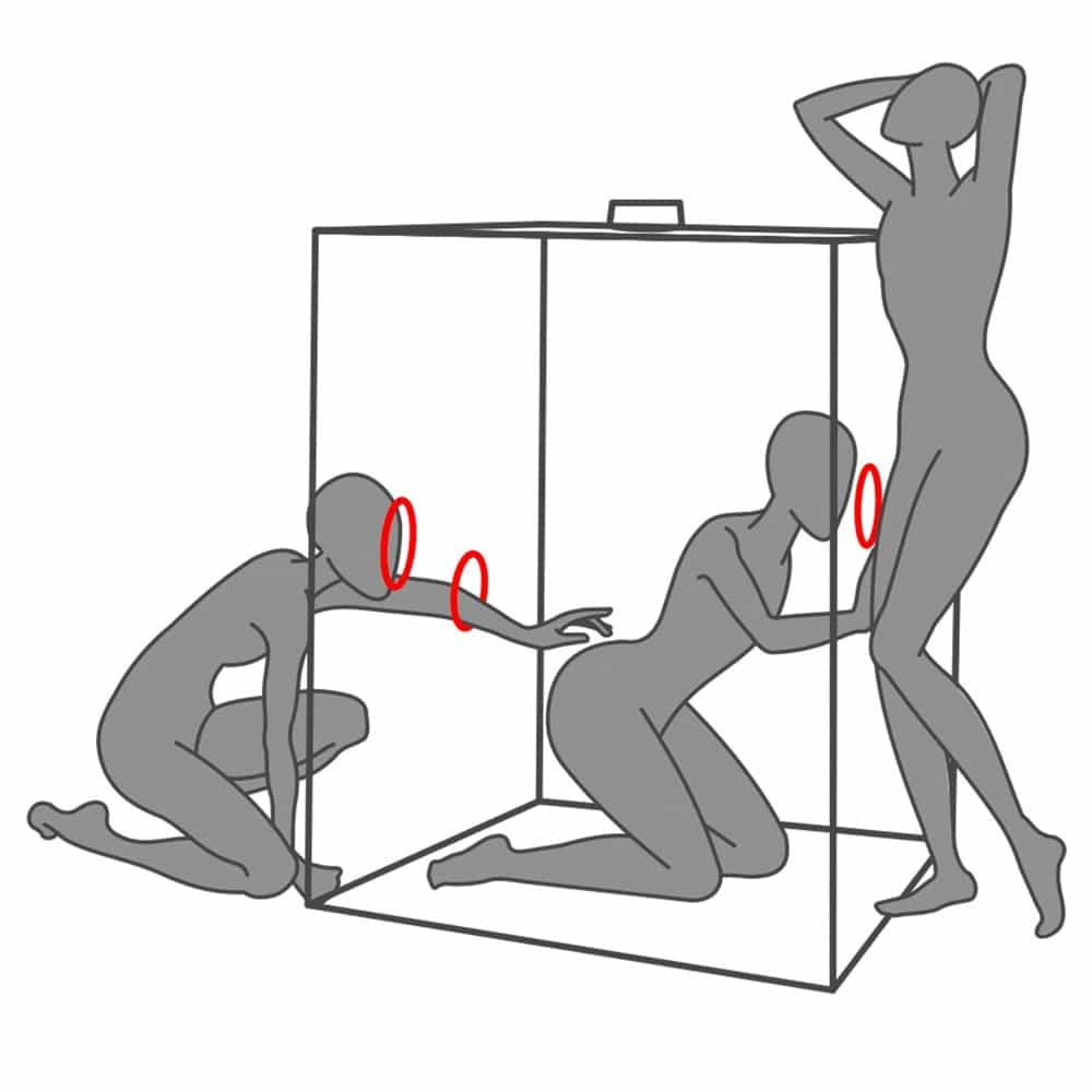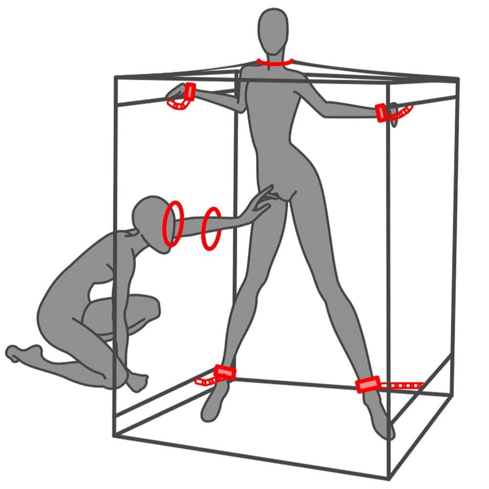 Secret Dome Scandale Closed BDSM Box Black and Red. Secret Dome's "Scandale" BDSM box is ideal for glory hole play, role-playing, and other fantasies. The sturdy box assembles quickly with a tube plug-in system and an opaque cover. It features a head hole with a zippered, adjustable collar, and nine closable holes (three per side). Access is provided through a zippered side door. For comfort, it includes LED lighting, a soft floor mat, and two fans for ventilation. The box also comes with adjustable, padded handcuffs and ankle cuffs. FOR MORE PRODUCT INFORMATION, please, visit the main product's page down below or visit one of our physical stores in Limassol and ask our staff for product presentation…