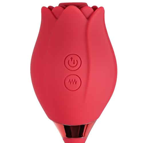 Sex time is made to please both the vagina and the clitoris. This is a top notch, double ended, 10-Speed, red color, silicone rose sucking vibrator with vibrating egg.