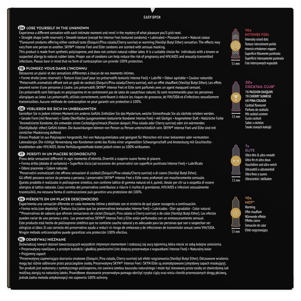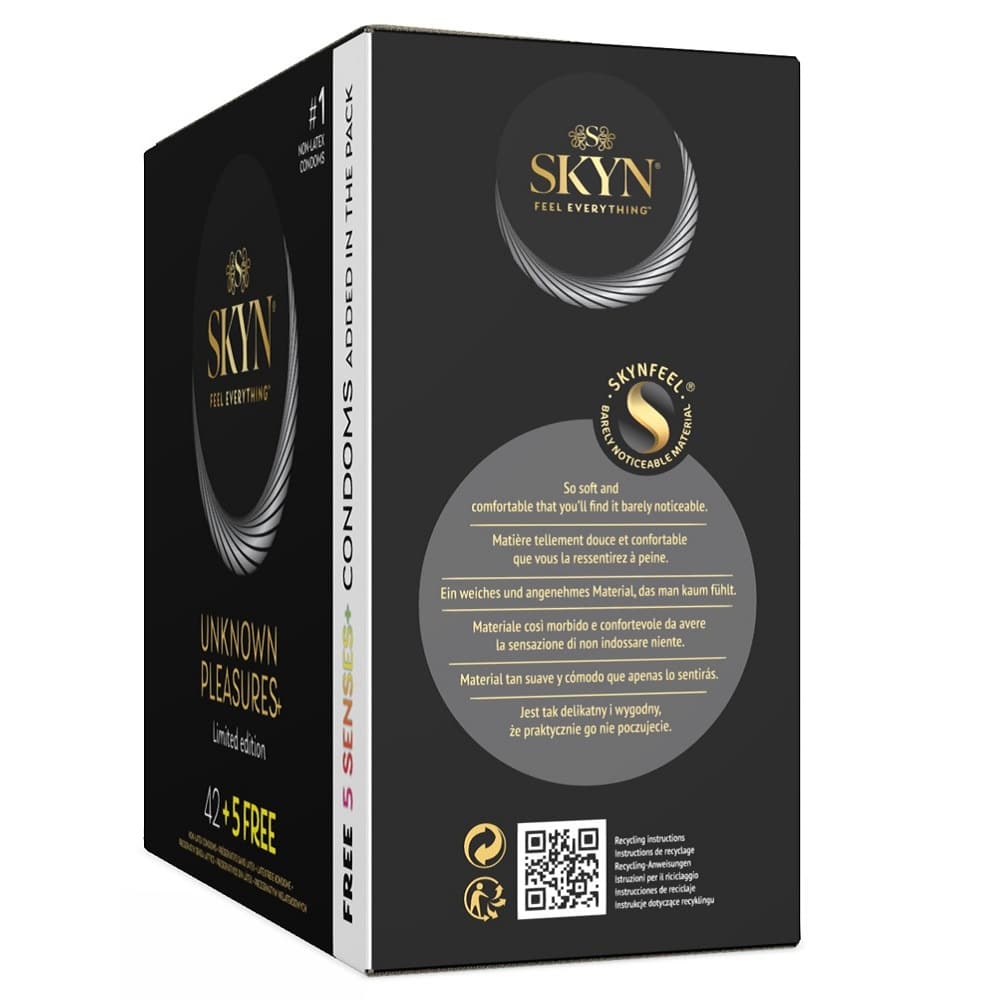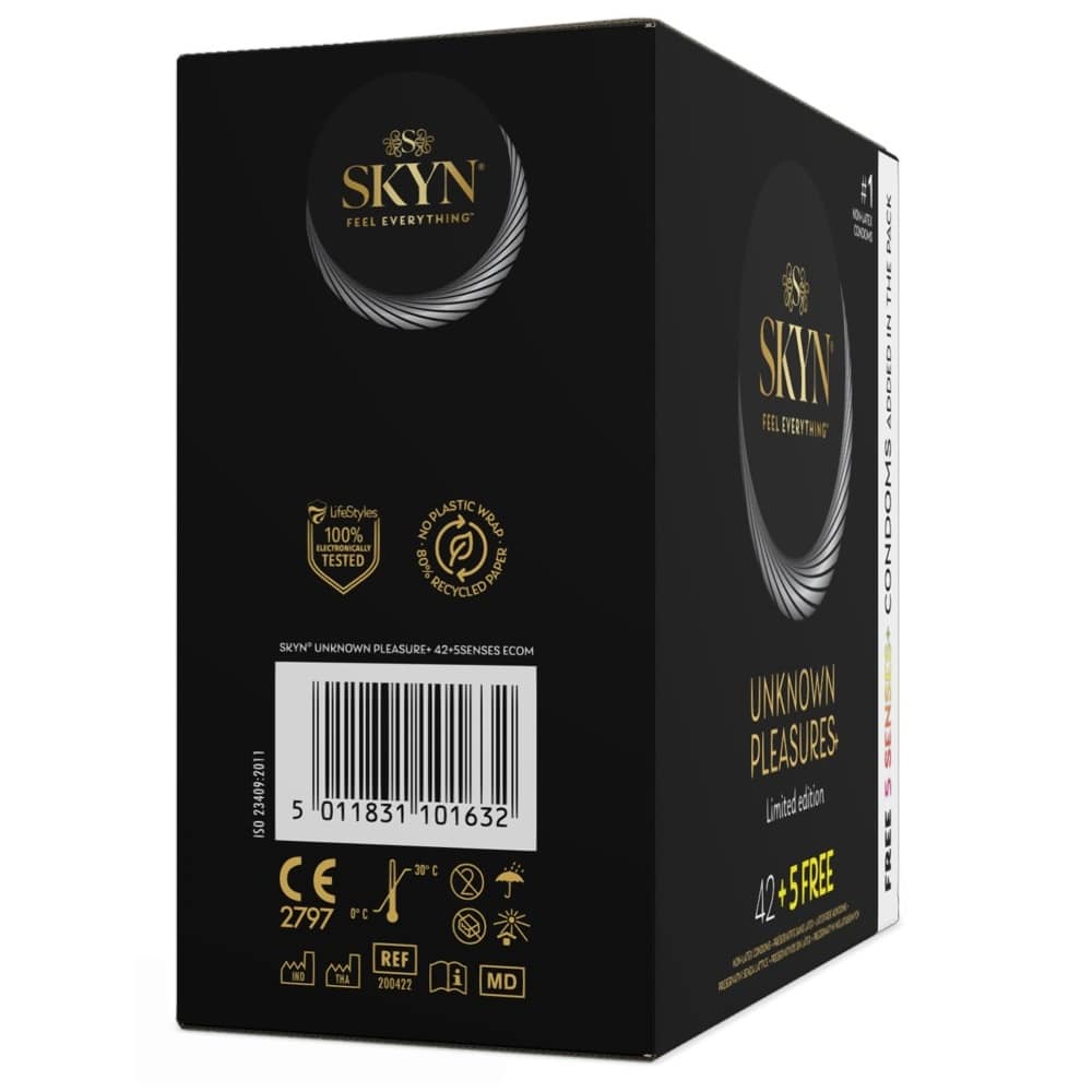 Skyn Condoms Unknown Pleasures pack of 47. SKYN condoms offer a safe, comfortable, and natural-feeling alternative to traditional latex. They are crafted from a unique material called polyisoprene, which feels soft and realistic to the touch. These condoms are entirely latex-free and odourless, making them an excellent choice for anyone with a latex sensitivity. For added comfort, they are coated in a silicone-based lubricant, feature a teat end, and are suitable for vegans. FOR MORE PRODUCT INFORMATION, please, visit the main product's page down below or visit one of our physical stores in Limassol and ask our staff for product presentation…