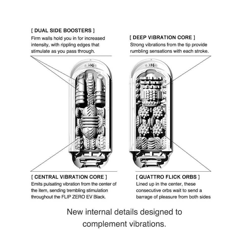 Tenga Flip Zero EV Masturbator Black. 10 years of evolution has led to the Tenga Flip Zero EV. A new dimension of pleasure made possible thanks to electronic vibrations. The FLIP ZERO EV houses two Vibration Cores inside of the elastomer sleeve, meaning the rumbling vibrations flow throughout the item for direct stimulation. The Vibration Cores are on opposing ends of the item, so the vibrations come from all around you. In the center you will find the vibrating core, rumbling ribs will stimulate, as you insert. Further in, is another vibration core, waiting for you every time you reach the end. With 5 different settings to enjoy, the Flip Zero EV offers a wide range of sensations. Squeeze the pressure pads to push out the air through the one sided valve and create a magical suction. The pleasure is unimaginable. FLIP ZERO EV BLACK uses firmer material inside with entirely new internal details, designed to provide stronger suction and more intense stimulation. FOR MORE PRODUCT INFORMATION, please, visit the main product's page down below or visit one of our physical stores in Limassol and ask our staff for product presentation…