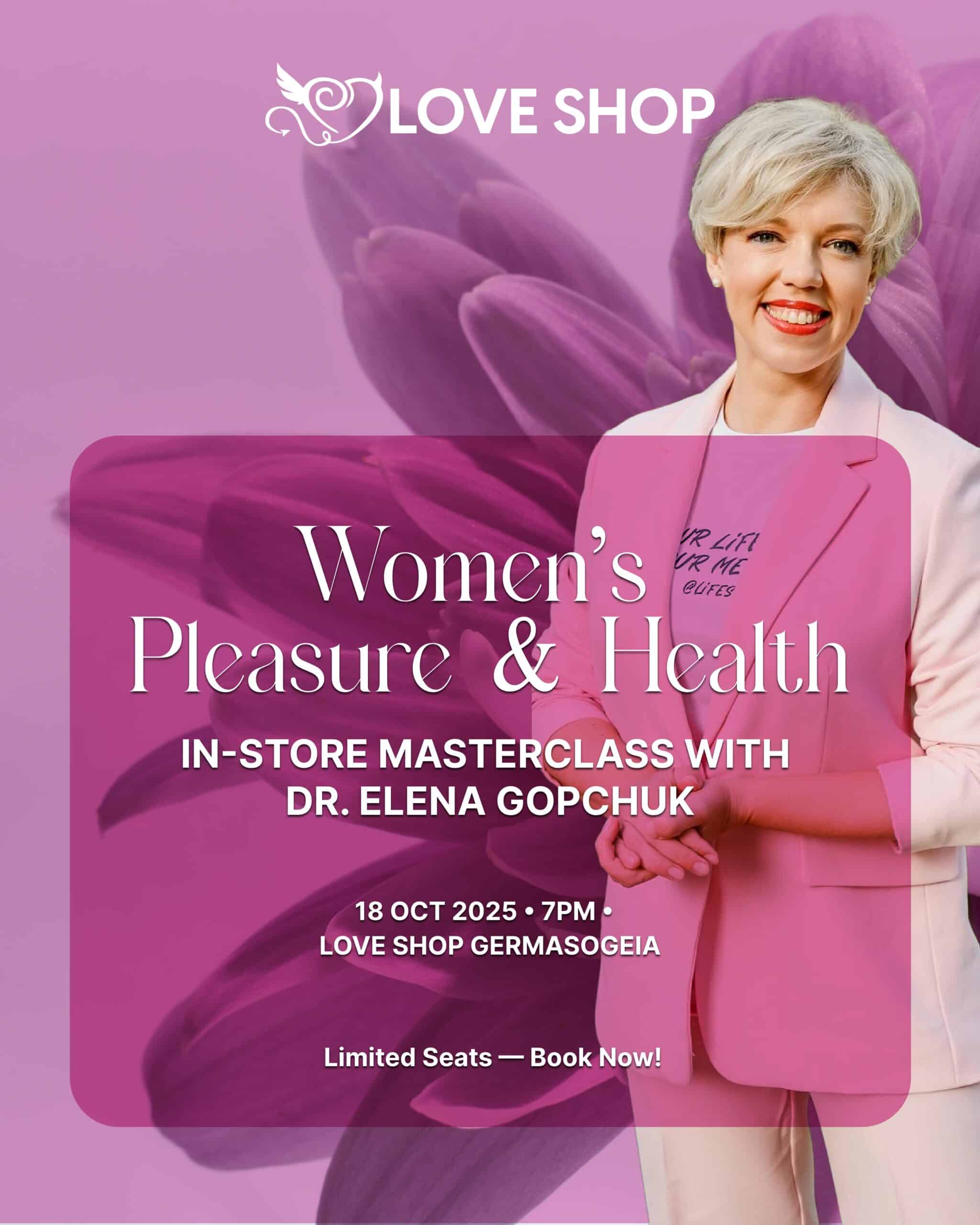 On 18 October at 7 PM, join us at Love Shop Germasogeia for an intimate event with Dr. Elena Gopchuk– OB/GYN, psychologist, sexologist, Lifestyle Medicine Advisor, & Cyprus Representative in European Association of LM.