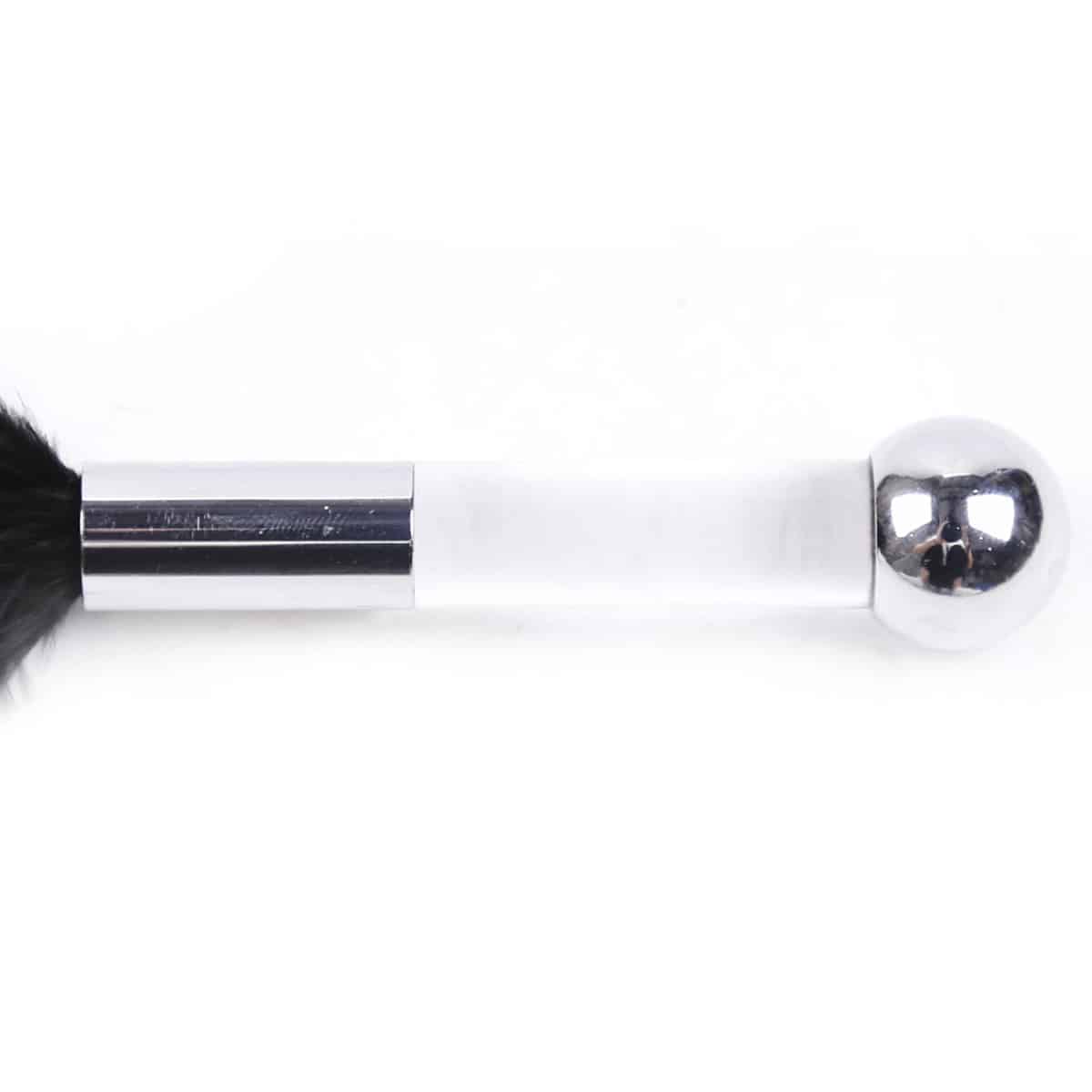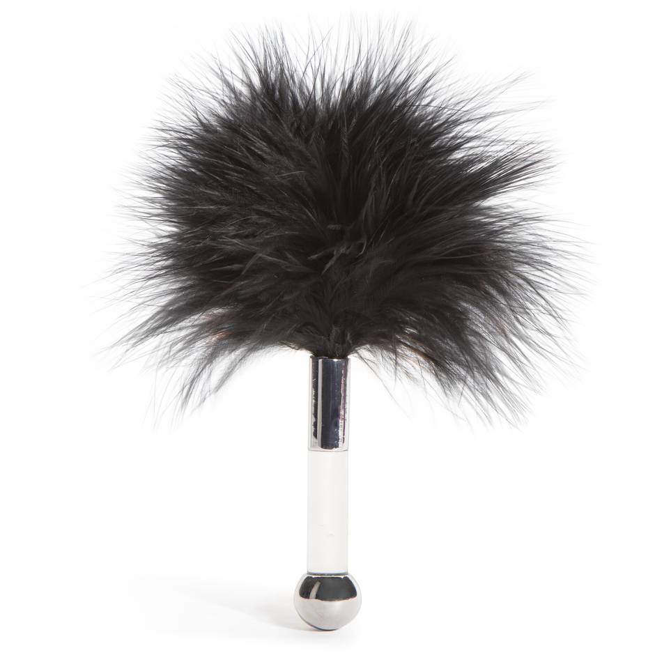 Naughty Toys Tickle Me Senseless Fluffy Feather Bondage play foreplay stimulating Teaser in Black 17 cm. High quality Black fluffy feather teasing tickler with acrylic and metal in clear colour wand handle.