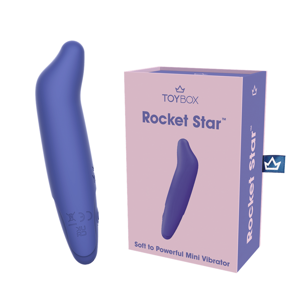 TOYBOX Rocket Star is a classic pocket size (9 X Ø 2 cm), high quality silicone, USB rechargeable, waterproof, personal massaging clitoral vibrator, placed in a sexy maching colour, prodective satin bag.