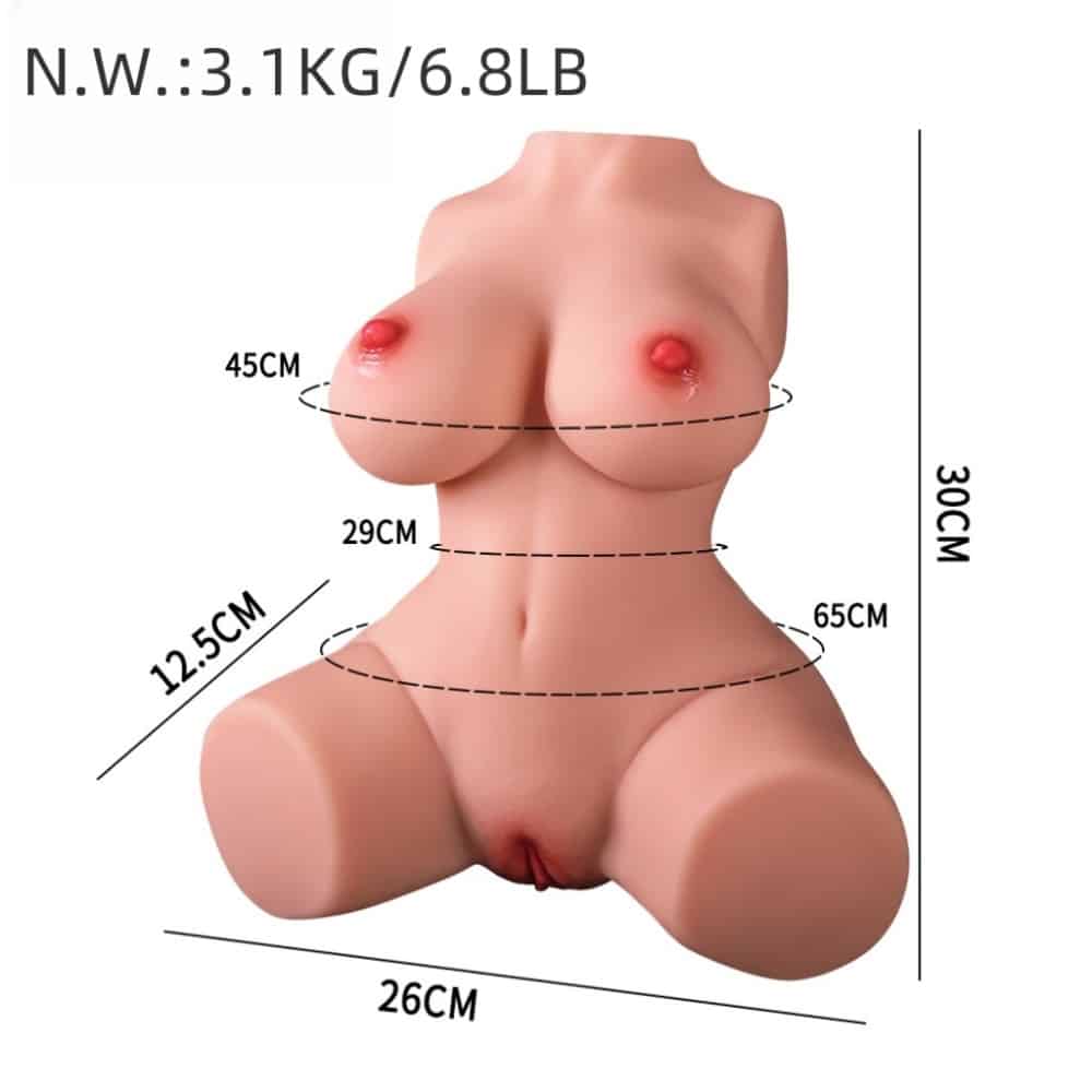 TOYBOY MIA mini female torso is a 3 Kg (6.8LB) 30 x 26 cm. Easy to hide at home. Realistic Life-Like Flesh TPE masturbation Sex Doll for Men. Realistic feel, touch and looks masturbator for Men in small size. Realistic, 3-in-1, solid Torso Doll with Big Ass, Big Boobs, Tight Pussy. Experience ultimate pleasure with cute male masturbator. She embodies a mature woman with big booty, big butt, and a slender waist. Enjoy explosive orgasms with textured channels. Explore vagina sex, anal sex, and breast sex anytime. As you engage with this sex doll ass masturbator, the sex boobs and pussy ass will sway and shake, adding to the excitement. Ideal for single men, single women, and couples. Combine only with water-based lubricants. Product will come to you in a discreet package. Read and learn more at the product's main page below or visit one of our physical stores in Limassol and ask for product presentation….