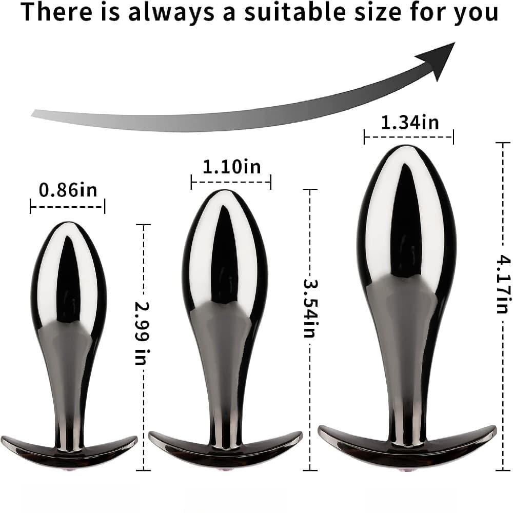 Metallic set with three different size options (S – M – L), iridescent butt plugs with pink Gemstone base. This trainer kit contains 3 anal toys in different sizes which will satisfy everyone's demands. made of high-quality metal. You can go with the small butt plug and gradually turn to the large butt plug, help you to become an expert form a beginner, later you can try larger anal sex toy for anal training. Ergonomic design. Butt Plugs with Flared Base. Unisex- Ideal for him, for her and for couples. Prostate Massage. Underwater play. Read and learn more at the product's main page below or visit our physical shops in Limassol and ask for product presentation..