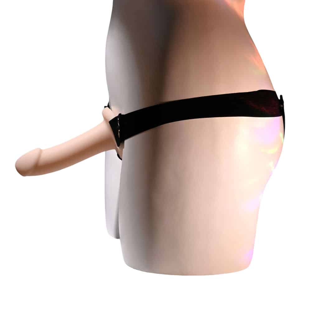 Adjustable Harness Strap-On with Silicone hollowed dildo for men to wear. Is this strap-on unisex? Yes, it is, women can wear it too. Which means, TOYBOY ZONATO is ideal for reverse role play. This hollow strap-on dildo features a soft, realistic shaft with a built-in internal tunnel—ideal for both penetrative play and wearer stimulation. Designed with a hollow core, it allows users with erectile difficulties to enjoy satisfying intimacy. The U-shaped silicone base comfortably supports the internal sleeve (14 CM depth), while the external dildo (13.5 CM insertable) delivers realistic pleasure for the receiving partner. A fully adjustable nylon harness fits up to 130cm (51.22'') waist size, making it suitable for all genders. Read and learn more at the product's main page below or visit one of our physical stores in Limassol and ask for product presentation..